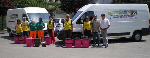 Distribuzione nelle varie abitazioni di kit per la differenziata, spiegandone anche le regole per un corretto utilizzo.